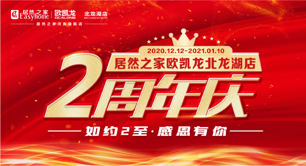 2020年12月12日到2021年1月10日,居然之家歐凱龍北龍湖店2周年慶如約而至。2020年最大力度,誠意滿滿,優惠多多,感恩回饋廣大客戶。