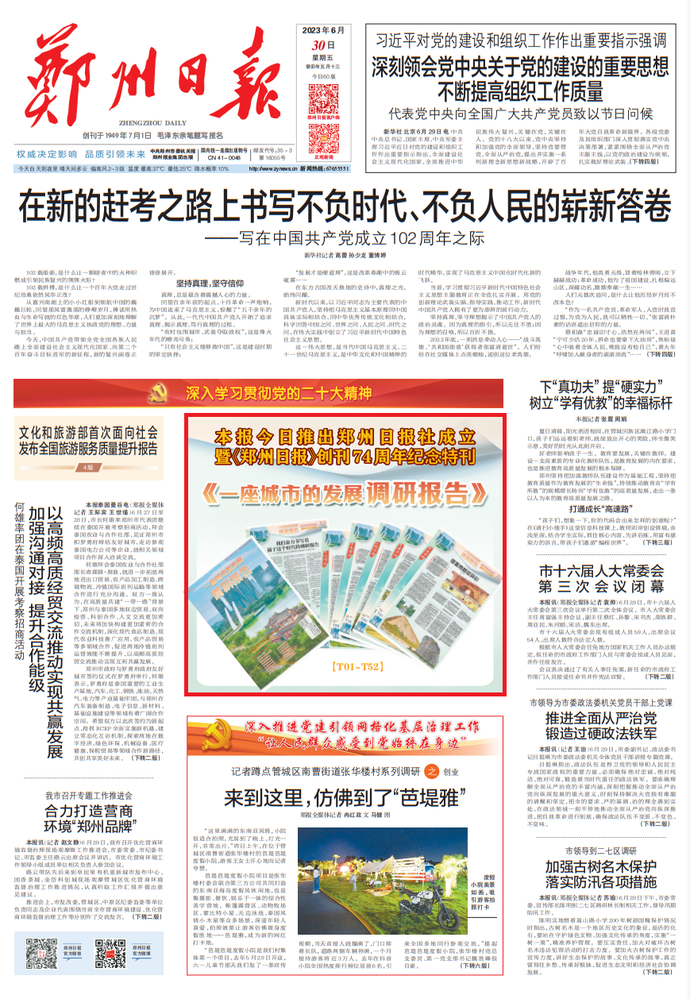 這一天,是中國共產黨102歲的生日,也是《鄭州日報》74歲的生日。