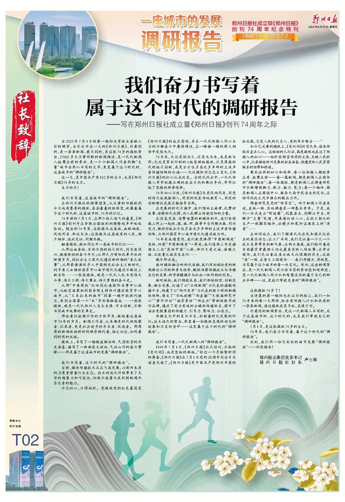 ——寫在鄭州日報社成立暨《鄭州日報》創刊74周年之際