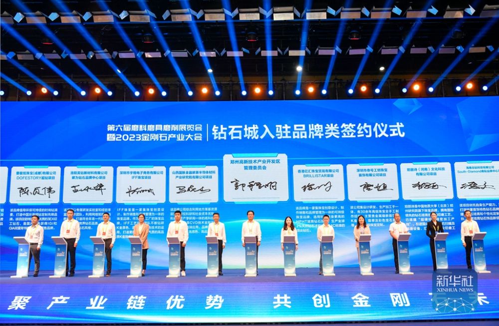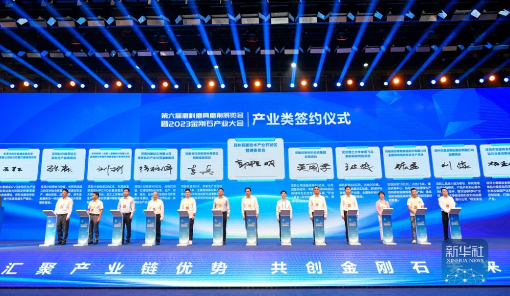 9月20日,第六屆磨料磨具磨削展覽會暨2023金剛石產業大會在鄭州會展中心舉行。圖為項目簽約現場。 徐宗福 攝