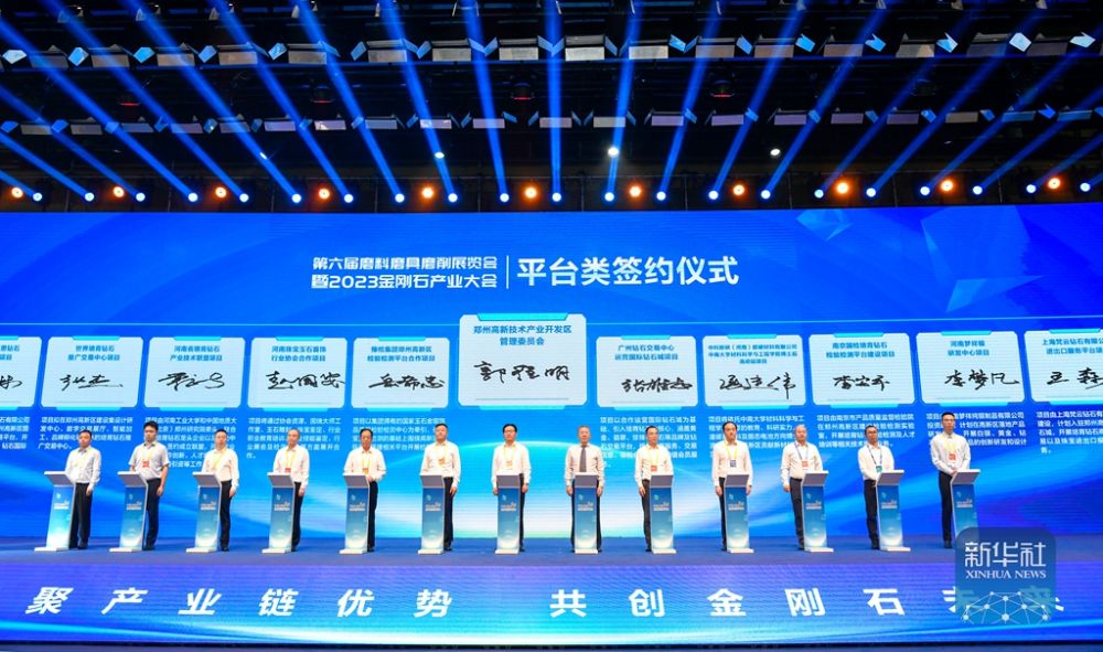 9月20日,第六屆磨料磨具磨削展覽會暨2023金剛石產業大會在鄭州會展中心舉行,圖為項目簽約現場。 徐宗福 攝