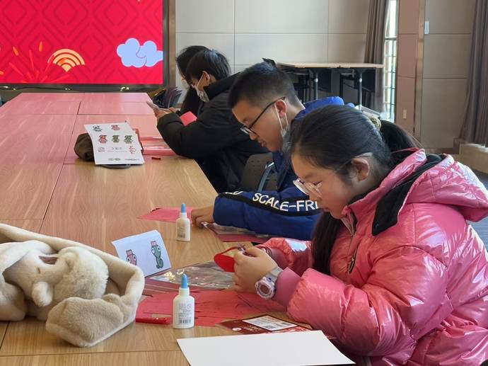 一來到活動現場,幾位小朋友便挑花了眼。桌面上擺放著形式各異、圖案不同的多款主題剪紙,有的春意滿滿,有的靈動可愛,博物館工作人員早已在桌子上準備好了剪刀、膠水等物品,等待著觀眾朋友前來參與。“帶上三個活動話題,發一個抖音,參與活動的物料與工具就能隨意使用了。”在工作人員的介紹下,觀眾快速完成了活動轉發操作,拿著領到的活動物料躍躍欲試,準備一展身手。