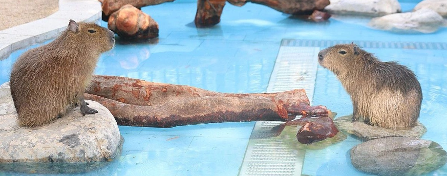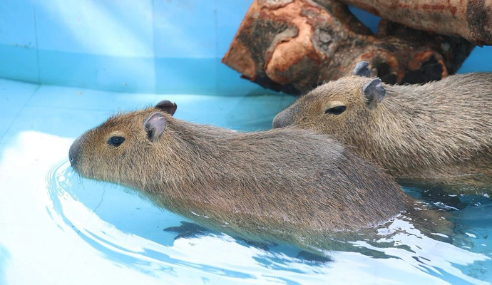 水豚愛水名不虛傳,它們非常喜歡待在水里,為了讓水豚可以更加舒服的游泳泡澡,工作人員除了每天常規維護,還定期會對水池進行深度清潔。