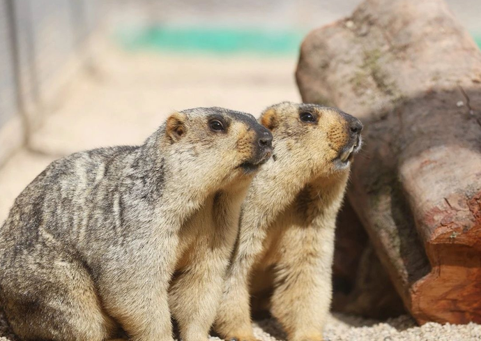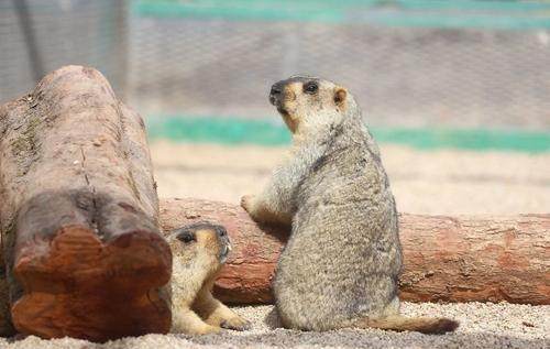 除了剛搬過來的水豚,鄭州市動物園小動物村還有5只憨態可掬的旱獺,旱獺今年可是火出了圈兒。圓滾滾的非常可愛,它們的眼睛又大又圓,外耳郭卻很小,四肢短粗,仿佛小短腿支撐著一個大大的身體。