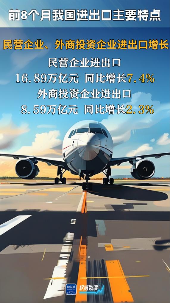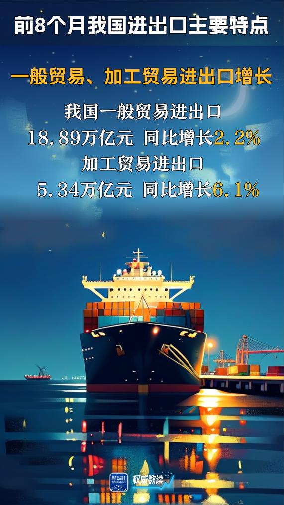 海關總署8日發布數據顯示,今年前8個月,我國貨物貿易延續平穩增長態勢,進出口總值29.57萬億元人民幣,同比增長3.5%。8月份,我國貨物貿易進出口總值同比增長3.5%,出口、進口連續3個月實現雙增長。