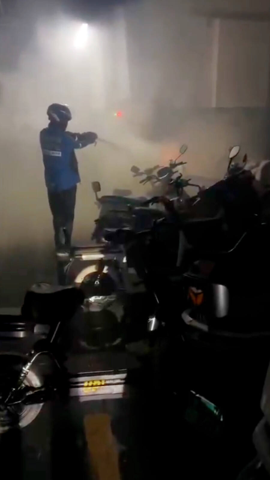 害怕嗎?起火位置一邊是配電箱,一邊是數輛電動車,要知道火焰的高溫下電池易爆燃,傷害性極強。