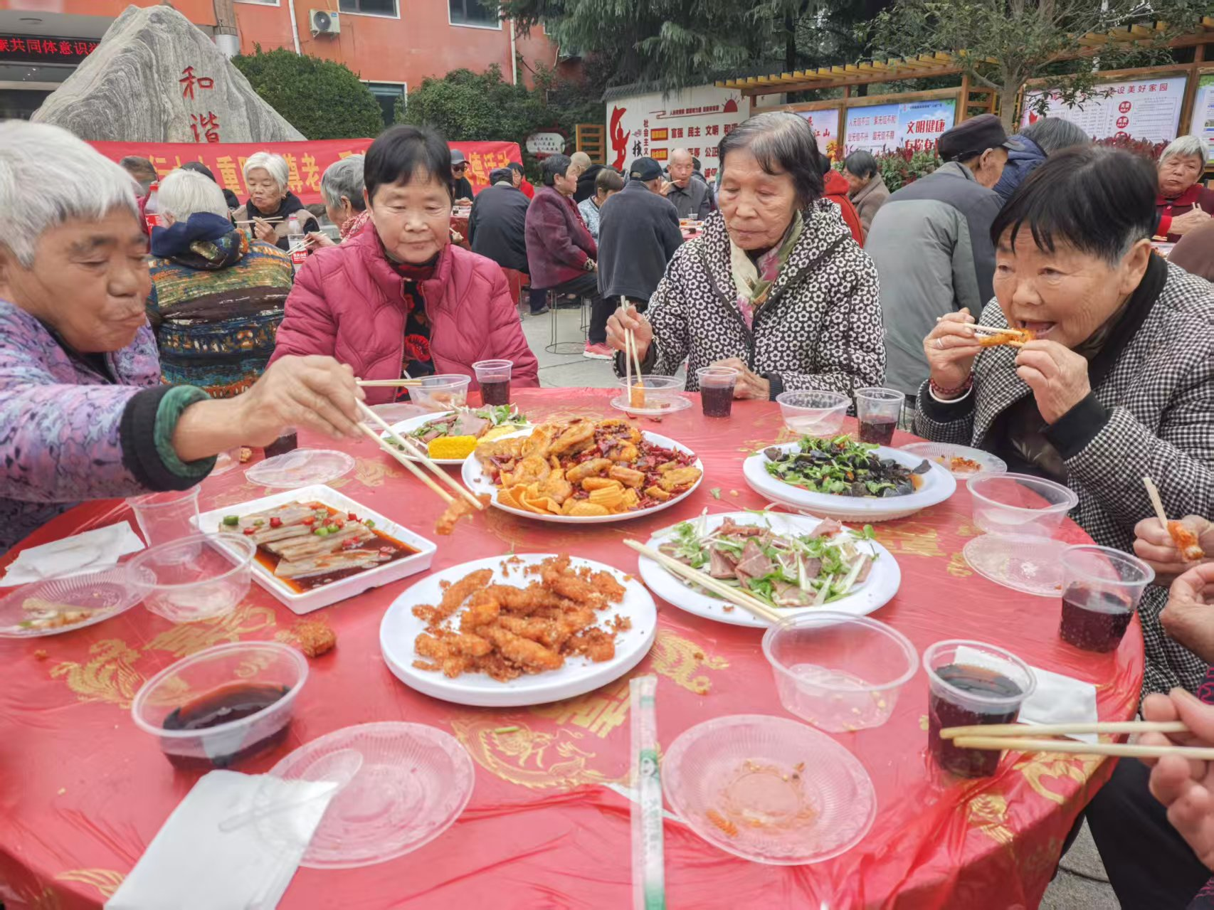 隨后,社工聯合社區精心準備了豐盛的重陽宴。老人們圍坐一堂,品嘗著可口的飯菜,與許久未見的老姐妹、老兄弟暢敘舊情,聊家常、談變化,歡聲笑語不絕于耳。整個場面溫馨和諧,其樂融融,充滿了家的溫暖。